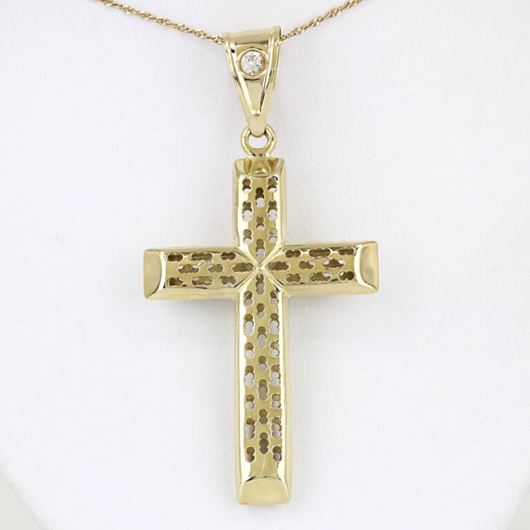10k Yellow Gold Hollow Punched Cross Religious Pendant w/ CZ Cubic Zirconia