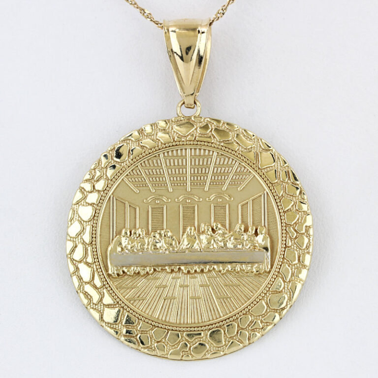 10K Yellow Gold Last Supper Religious Medallion Nugget Pendant