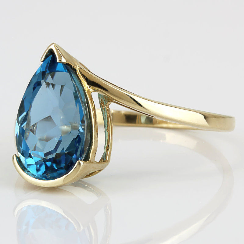 London Blue Topaz Solitaire Ring 10k Yellow Gold Sanur Cocktail Anniversary Gift