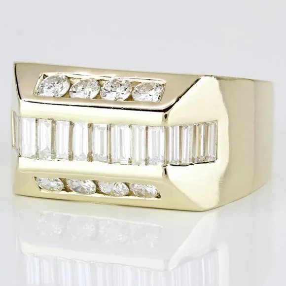 14k Yellow Gold Baguette & Round Diamonds Anniversary / Cocktail Ring