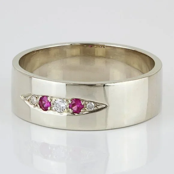 Vintage Men’s 10k White Gold Diamond & Ruby Anniversary Band Wedding Ring