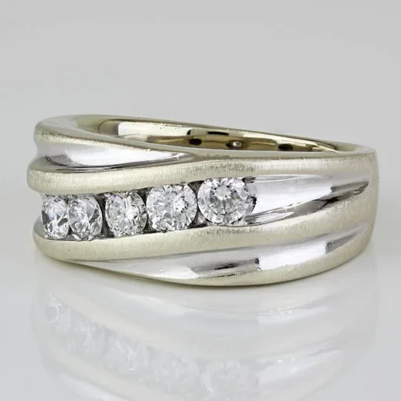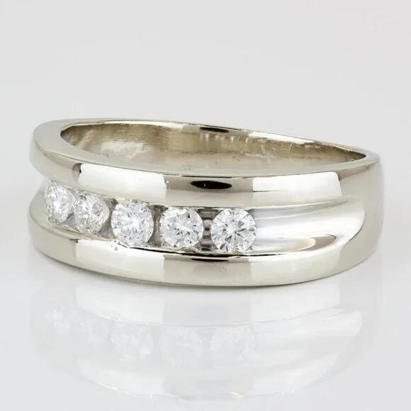 14k White Gold Half Carat Diamond Men’s Wedding Band Anniversary Ring