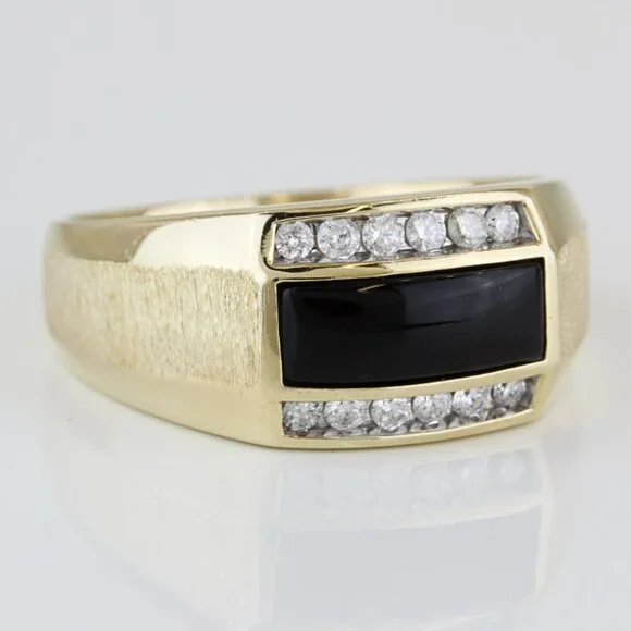 Vintage 10k Yellow Gold Onyx & Diamond Brushed/Polish Band Ring