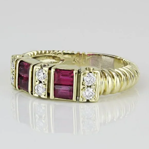14K Yellow Gold Diamond & Ruby Anniversary Band / Bridal Marriage Wedding Ring