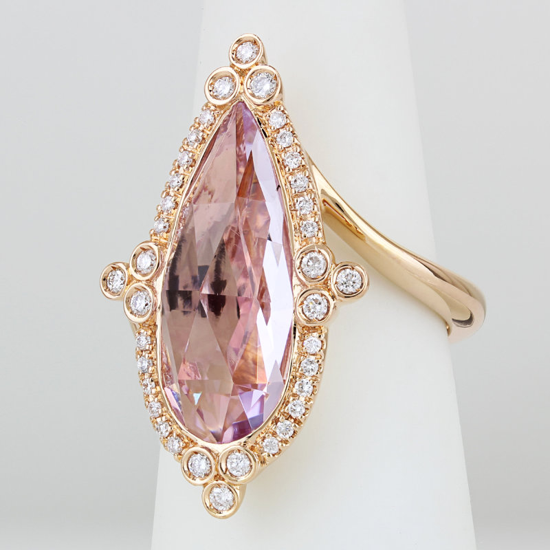 14K Rose Gold Kunzite & Diamond Anniversary Engagement Cocktail Ring by Ben Kho