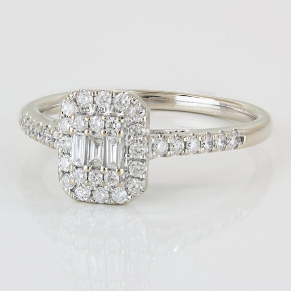 10k White Gold Princess-cut + Baguette-cut Diamond Wedding / Cocktail Ring