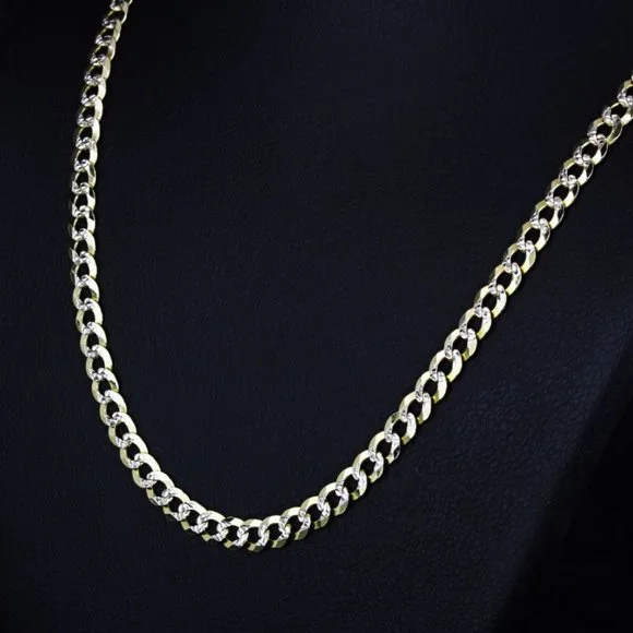 10k Two-Tone Yellow & White Gold 20″ Diamond-Cut Curb Link Chain