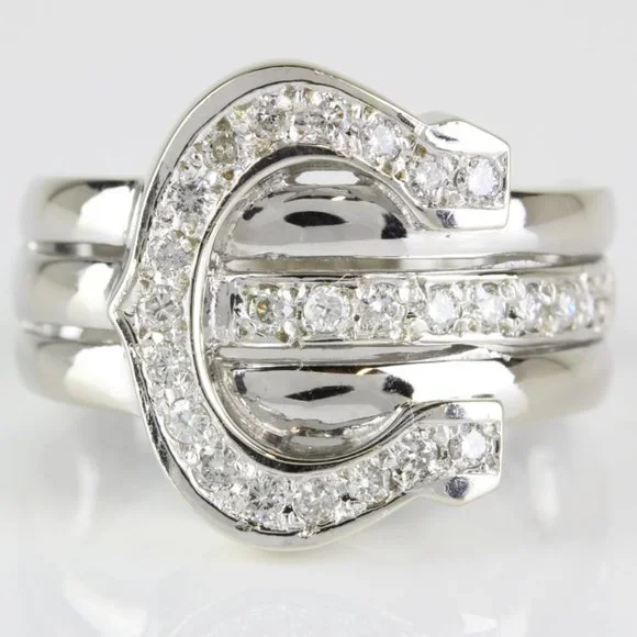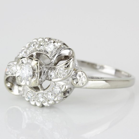 Vintage 14k White Gold Horseshoe Diamond Ring