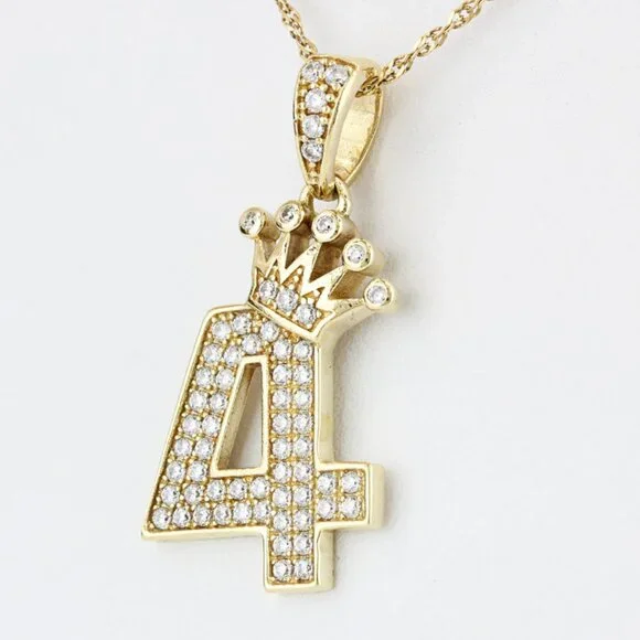 10k Yellow Gold Cubic Zirconia Number 4 Crown Pendant Charm