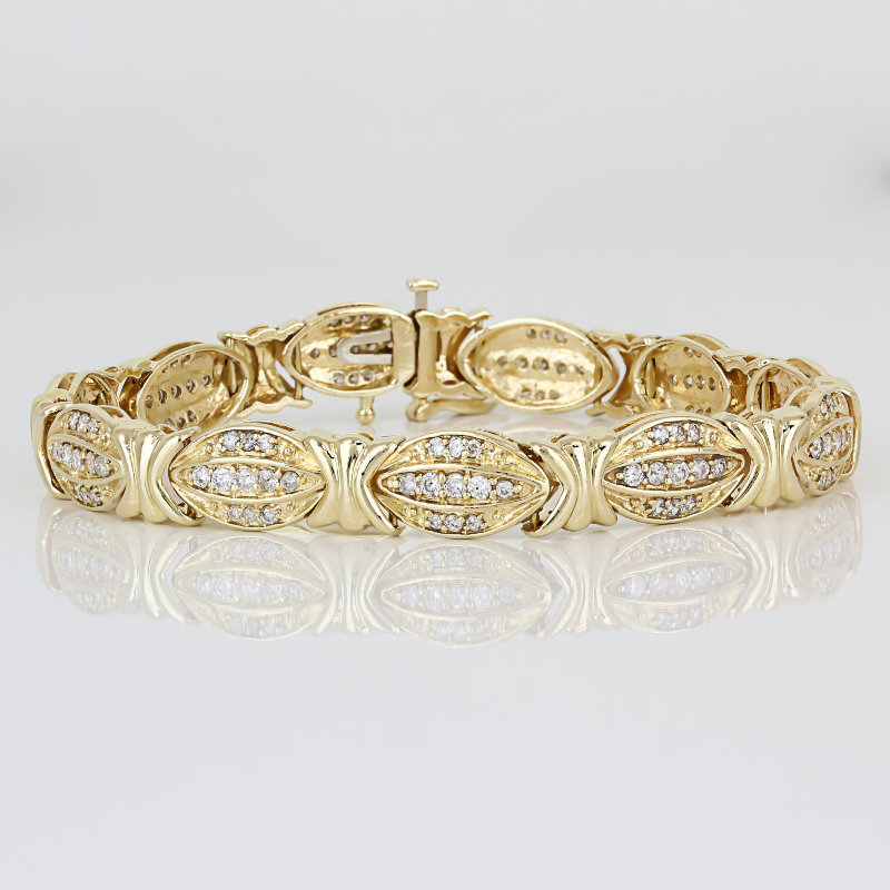 14K Yellow Gold 2 Carat Diamond X&O Tennis Bracelet