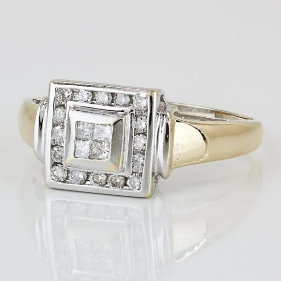 14k Two-tone Gold Princess + Round-cut Diamond Anniversary / Cocktail Ring