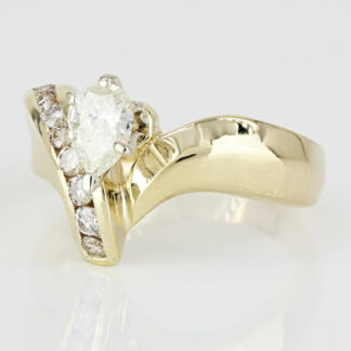 14K Yellow Gold Pear & Round Diamond Chevron Engagement Cocktail Ring