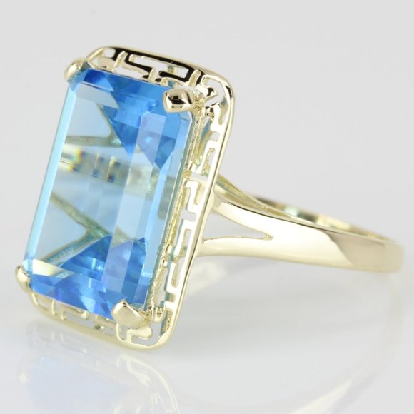 Vintage 14k Greek Key Ring w/ Blue Topaz