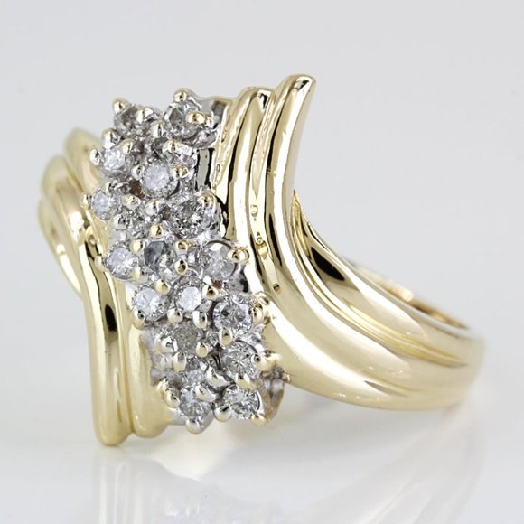 Vintage 10k Yellow Gold Diamond Cluster Cocktail Ring