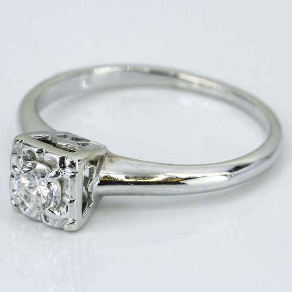 Vintage 14k White Gold Diamond Solitaire Engagement / Anniversary Ring