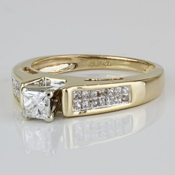 14K Yellow Gold Princess Diamond Wedding Engagement / Anniversary Ring
