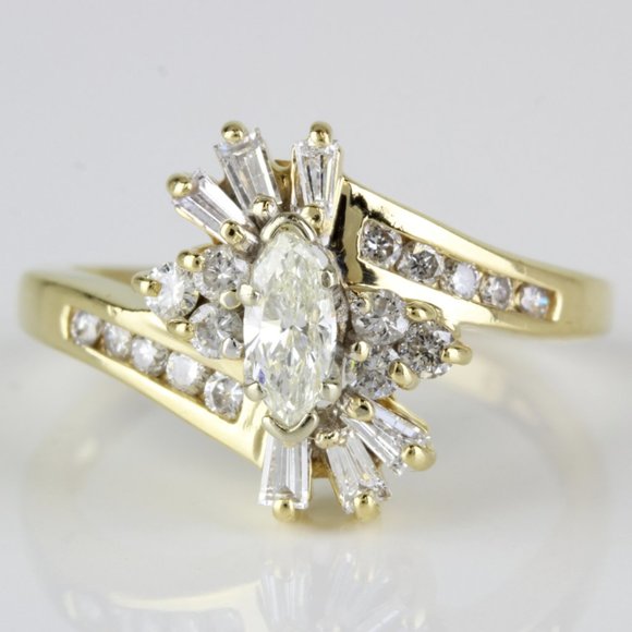 14K Yellow Gold Marquise Diamond Engagement Ring