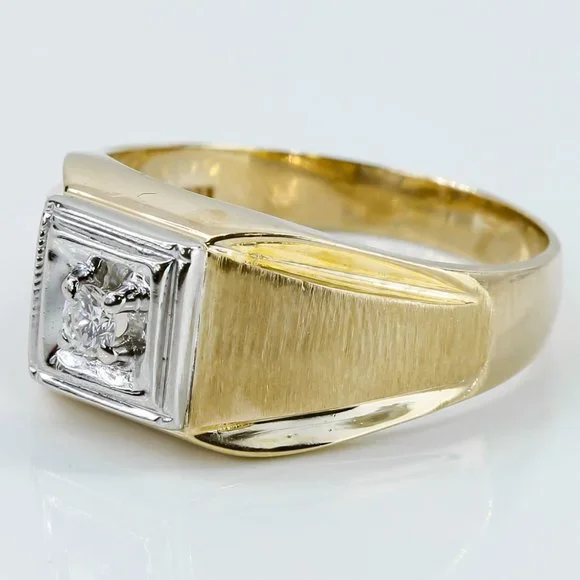Vintage 10K Two-Tone Gold Solitaire Diamond Men’s Ring