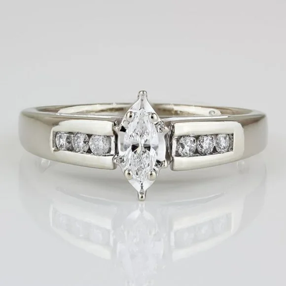 14k White Gold Marquise-cut Diamond Engagement Ring / Bridal Wedding Band Set