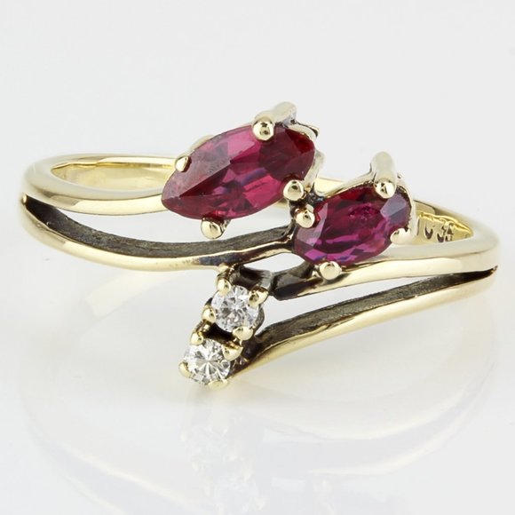 14K Yellow Gold Marquise Ruby & Diamond Split‑Shank Anniversary / Cocktail Ring
