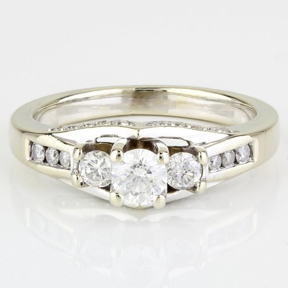 14K White Gold Three‑Stone Diamond Bridal / Engagement Ring