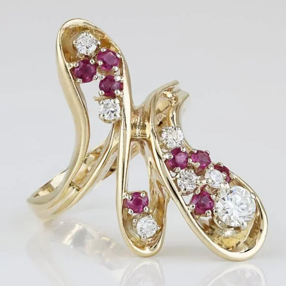 14k Yellow Gold Diamond + Red Spinel Wedding / Anniversary / Cocktail Ring