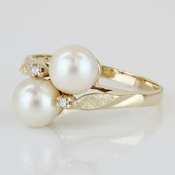 14K Yellow Gold Double Pearl & Diamond Cocktail Ring