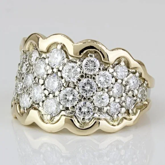 Vintage 14K Gold Diamond Dome Statement Ring Cocktail Anniversary Gift Jewelry