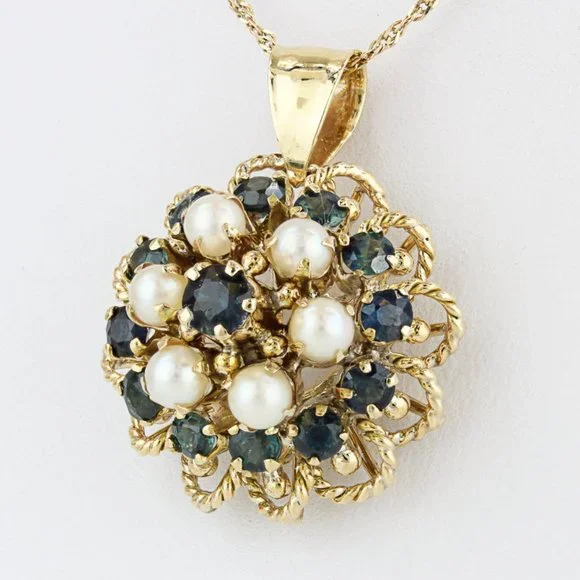 Vintage 10 Karat Yellow Gold Blue Spinel + Pearl Anniversary Pendant