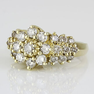 14k Yellow Gold 1-Carat Diamond Cluster Waterfall Cocktail Ring