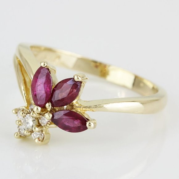 14k Yellow Gold Diamond & Marquise Ruby Flower Ring