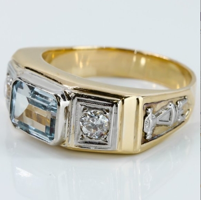 Vintage 18k Two-Tone White & Yellow Gold Topaz & Diamond Men’s Ring