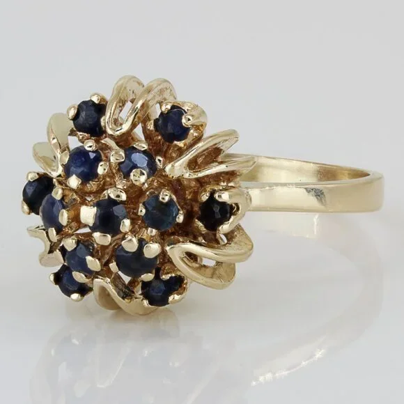 14k Yellow Gold Sapphire Gemstone Flower Dome Cocktail / Anniversary Ring
