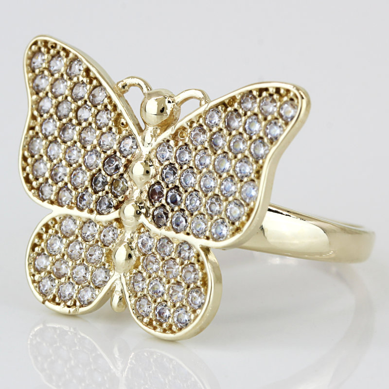 10K Yellow Gold CZ Cubic Zirconia Encrusted Butterfly Ring