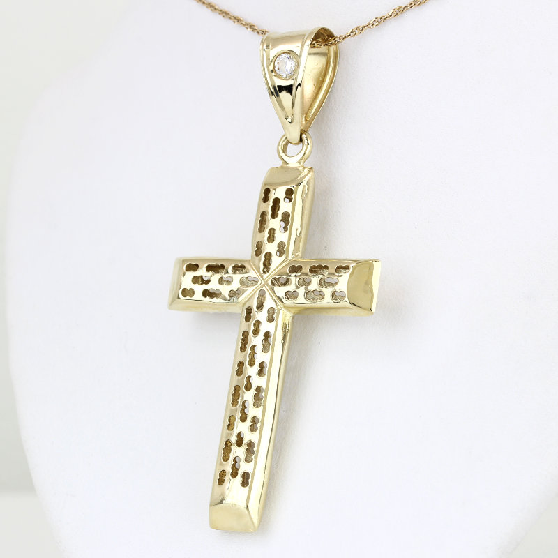 10k Yellow Gold Hollow Punched Cross Religious Pendant w/ CZ Cubic Zirconia