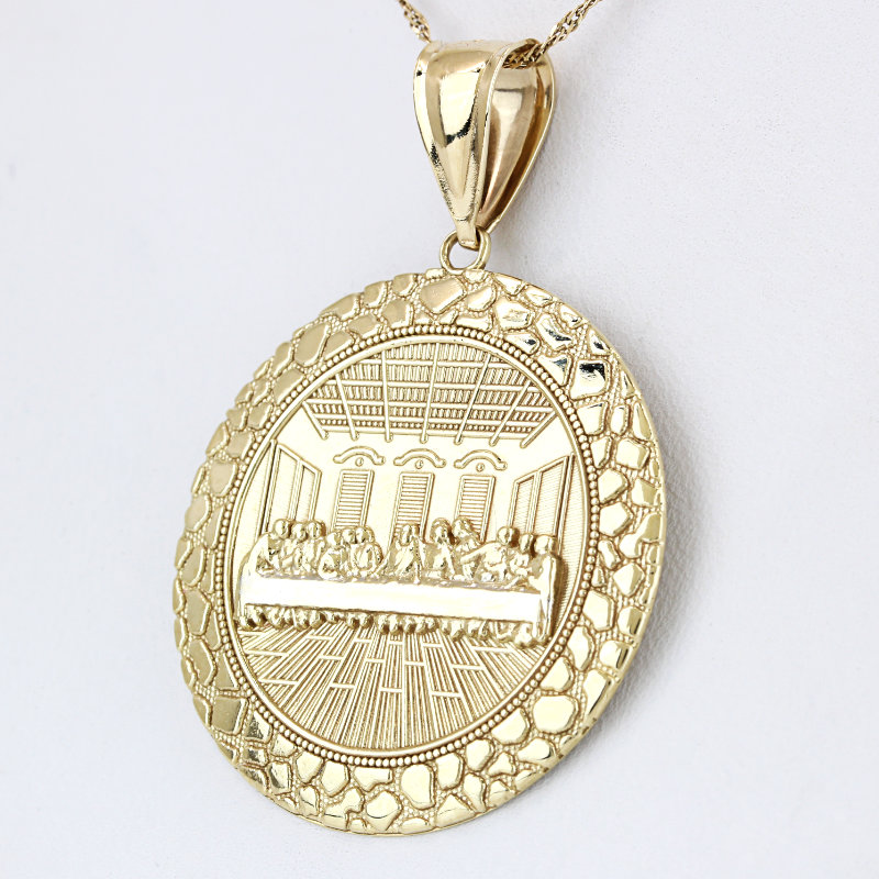 10K Yellow Gold Last Supper Religious Medallion Nugget Pendant