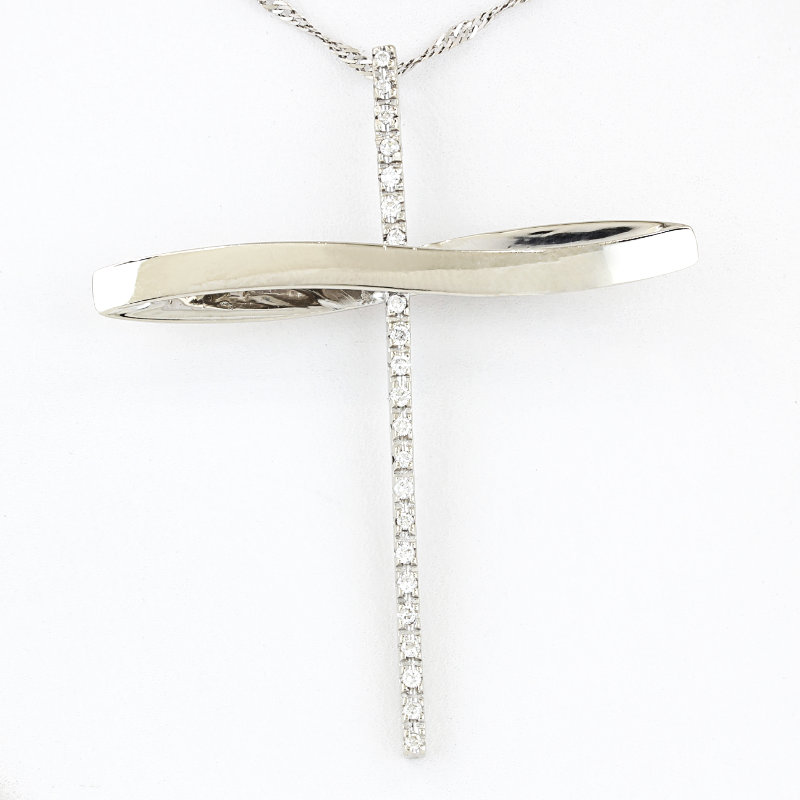 14K White Gold Infinity Ribbon Diamond Cross Religious Pendant