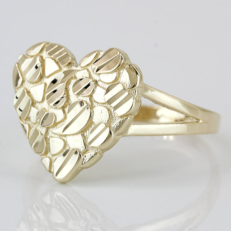 14K Yellow Gold Diamond-Cut Nugget Heart Ring