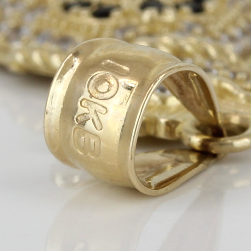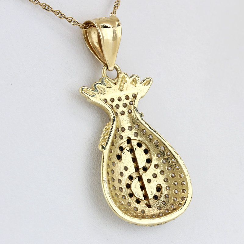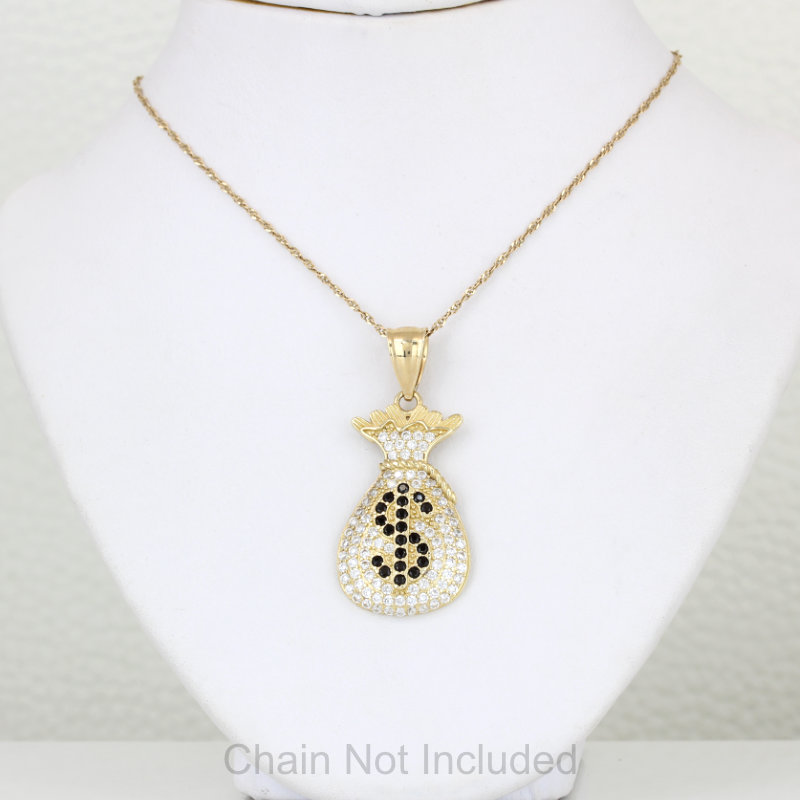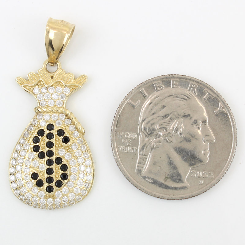 10K Gold White & Black CZ Cubic Zirconia Encrusted Dollar Sign Money Bag Pendant