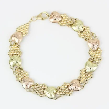 Vintage 10K Two-Tone Black Hills Gold Hearts & Grapes Bracelet