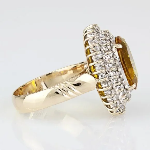 10k Yellow Gold Citrine Gemstone & Diamond Halo Anniversary / Cocktail Ring