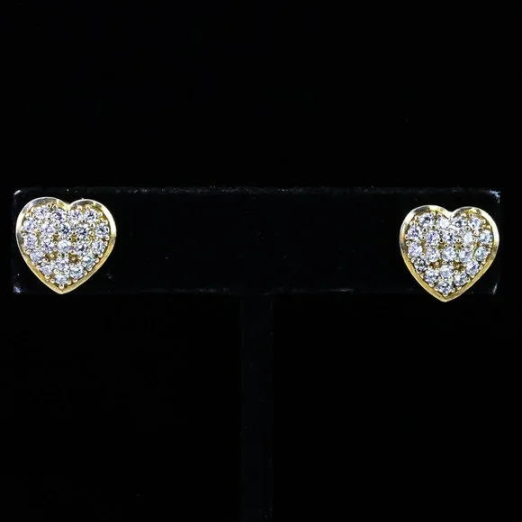10k Yellow Gold & Pavé CZ Cubic Zirconia Heart Hearts Earrings