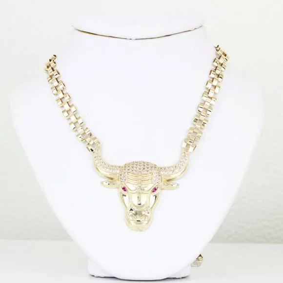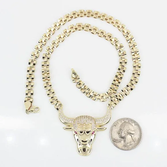 10k Yellow Gold Rolex-Style Chicago Bulls Cubic Zirconia + Spinel Chain