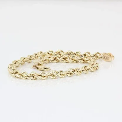 This bracelet is made of 10 karat yellow gold & is comprised of an attractive twist rope link style that is easily paired with any outfit, on any occasion. The piece measures at 8 inches in total length & is held closed with a lobster clasp closure. “10K” is stamped onto two sections of the closure. In excellent condition!