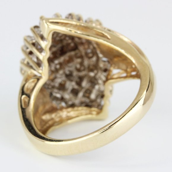 This 10k yellow gold vintage cluster ring by Orla Vagn features a timeless design with sparkling diamonds set in a bold arrangement. Its elegant craftsmanship and warm golden hue make it a standout piece, perfect for collectors or anyone seeking a statement accessory.