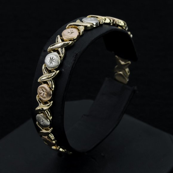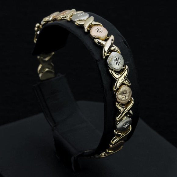14K Tri-Color Gold “XOXO” Link Bracelet