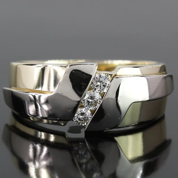 14K Two-Tone Gold 3 Diamond Groom’s Wedding Band