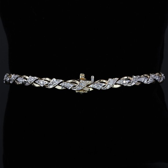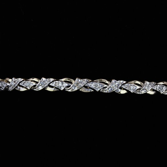 14k Two-Tone Gold Diamond Fancy Crossover Link Bracelet