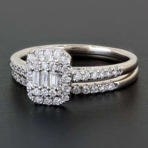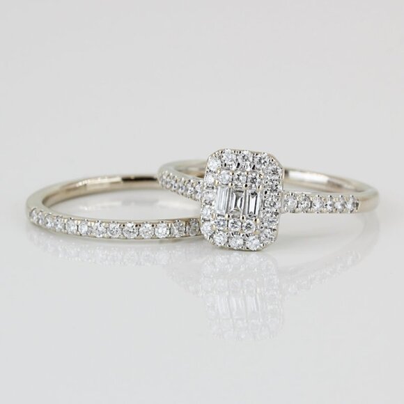 14k White Gold Baguette + Round-cut Diamond 2 Pc. Wedding Ring Set
