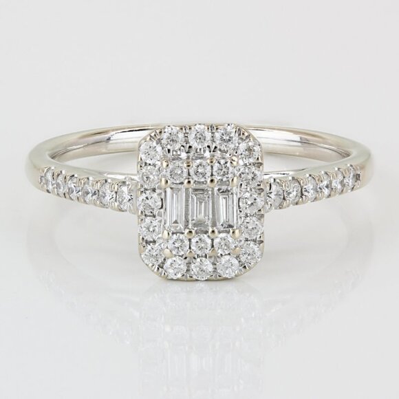 Stones: 3 Baguette + 43 Round Diamonds (.90 Carat Total)